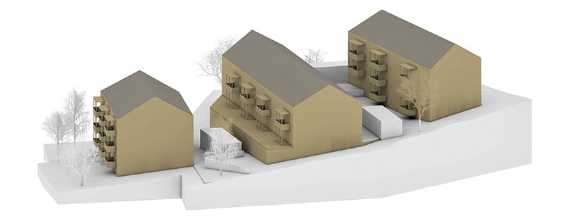 Die Form und die Situierung der drei Häuser der Siedlung, die sich leicht fächerförmig zum nach Südwesten abfallenden Hang anordnen, ergeben sich aus den natürlichen Gegebenheiten wie der Hangneigung, der Ausrichtung und den baurechtlichen Vorgaben. Die Überbauung wird nach den Dimensionen der Nachhaltigkeit realisiert und soll entsprechend dem Standard Nachhaltiges Bauen Schweiz (SNBS) zertifiziert werden.